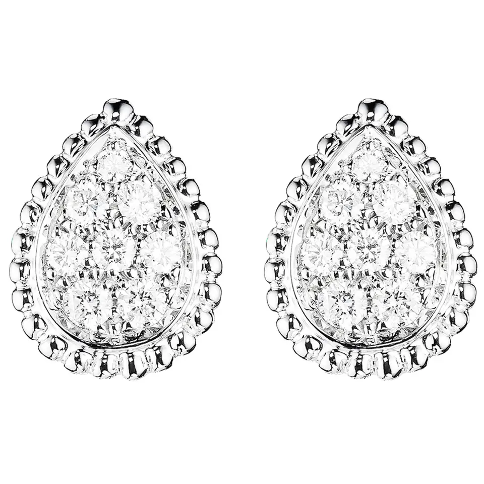 Фірмовий мотив у формі краплі в поєднанні з інкрустацією діамантами створює делікатне мерехтіння та підкреслює елегантність образу.